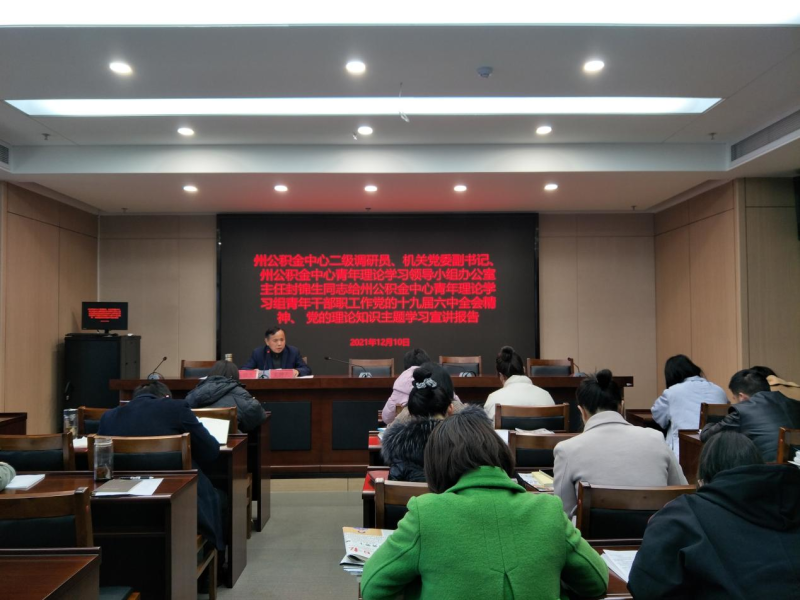 封锦生在授课中,首先向州公积金中心青年干部宣讲了党的十九届六中全会精神,着重对全会提出的“两个确立”、“马克思主义中国化的三次飞跃”、“四个伟大飞跃”、“十个明确”、“十三个方面的历史成就”、“五个方面历史意义”、“十个坚持的历史经验”、“一个根本问题”、“四个必须”、“一个伟大号召”等内容进行了生动讲解。其次结合工作实践,对党建理论中的党的工作、党的建设、党务工作的内涵和联系,如何通过履职尽责强化党建助推公积金事业发展上新台阶,如何提高青年干部理论功底和能力本领进行授课。